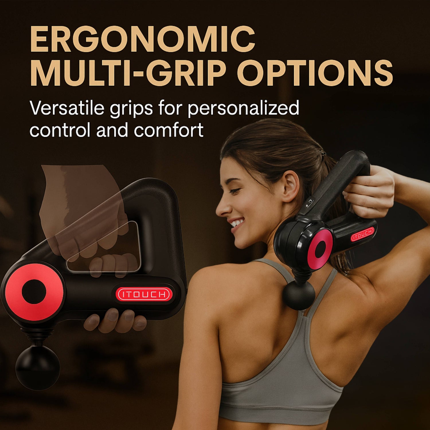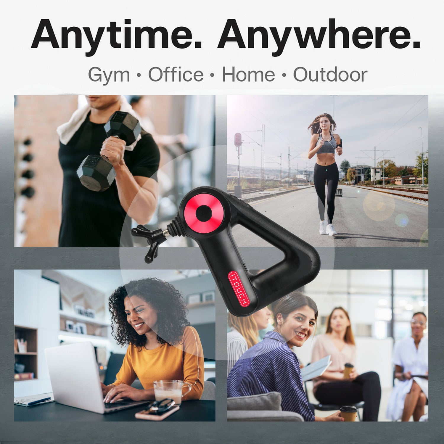 Designed for deep relief and total convenience, the ITOUCH Massage Gun delivers high-powered performance in a compact, ergonomic design. Ideal for athletes, office workers, and anyone needing recovery on the go.