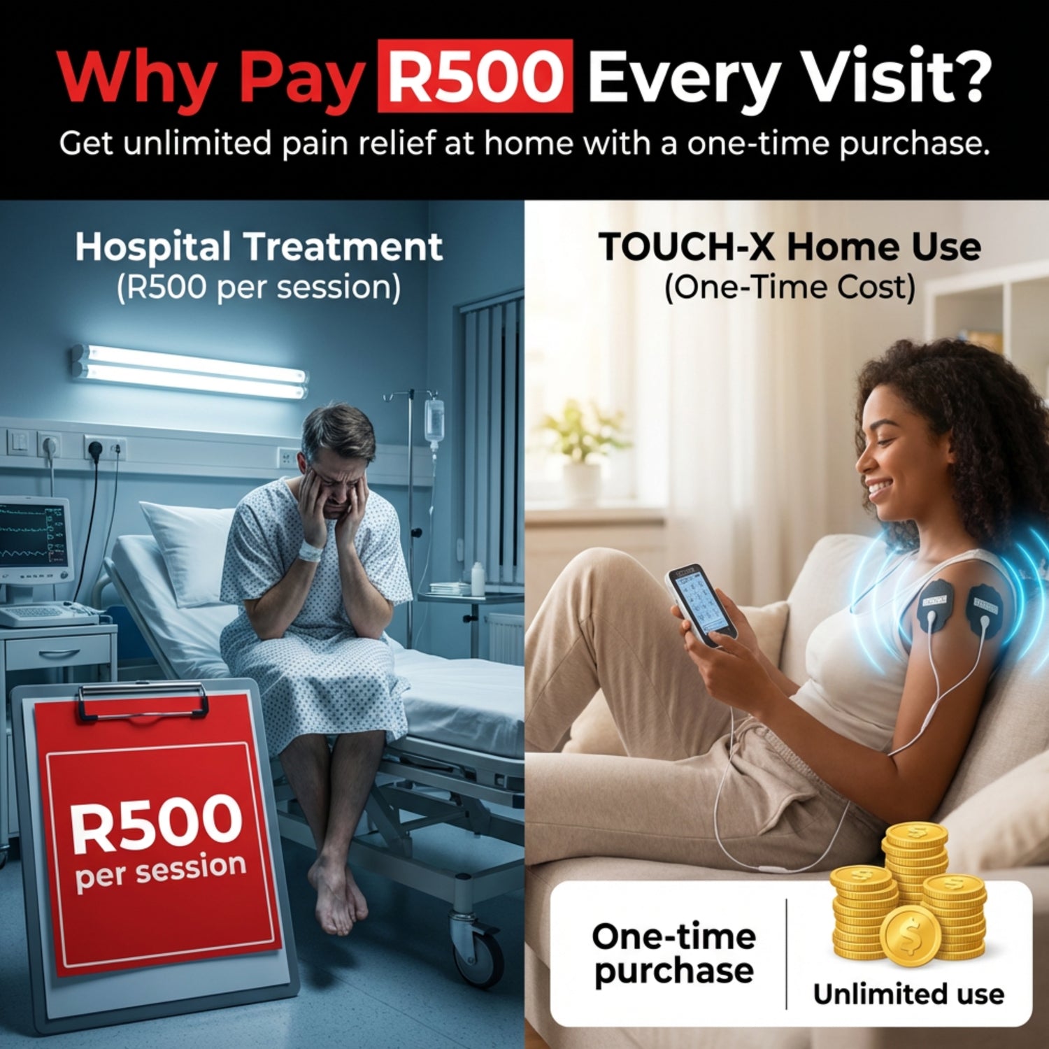 TOUCH-X TENS Machine & EMS Unit – 12 Modes, Dual Channel Pain Relief Device